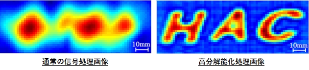一方、高分解能処理では、広い角度の情報を使用します。今まで捨てていた広範囲に反射した信号を利用することで、1点当たりの情報量が増え、分解能を向上させることが可能となります。