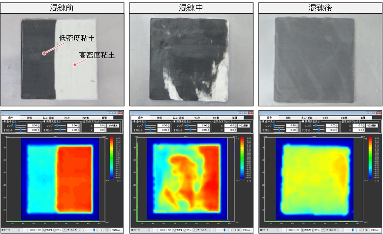密度の異なる2種類の材料(粘土)の混錬状態を可視化した計測事例を示します。